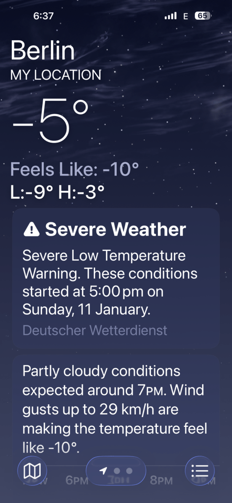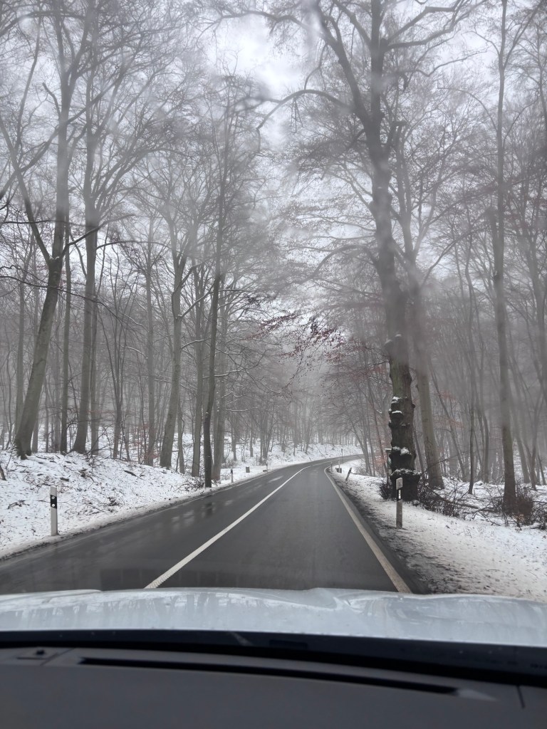 The road out of Berlin was covered in a light fog which melded into the white snow on each side of the road and the view was just white. Our trip expected to be about 3 hours to reach our destination.