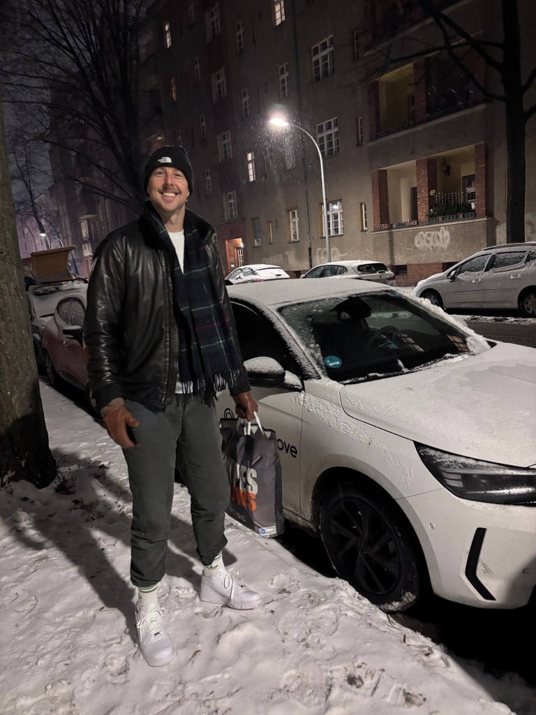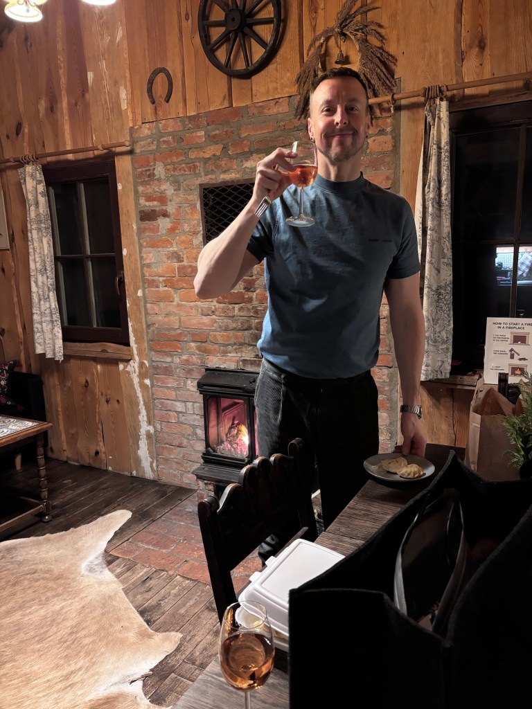 Then it was time to drive the extra hour to find our farmhouse accommodation in Brzozowo. It was dark already and off the beaten track, we tried to locate our own hut but took a wrong turn. Trying to turn the car around, Scott backed into a ditch….we were bogged in snow. I had to get behind the wheel while he pushed the car. Success!