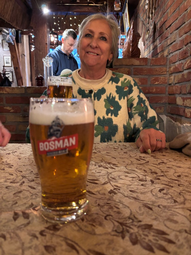 A lovely fire was keeping our farm cottage warm. It had all the comforts of home except for a television. It was decorated with traditional Polish designs and Knick knacks. There was WiFi so we could use our devices for entertainment if needed.