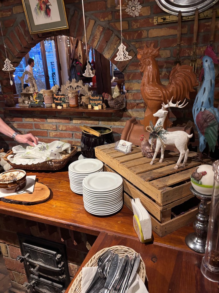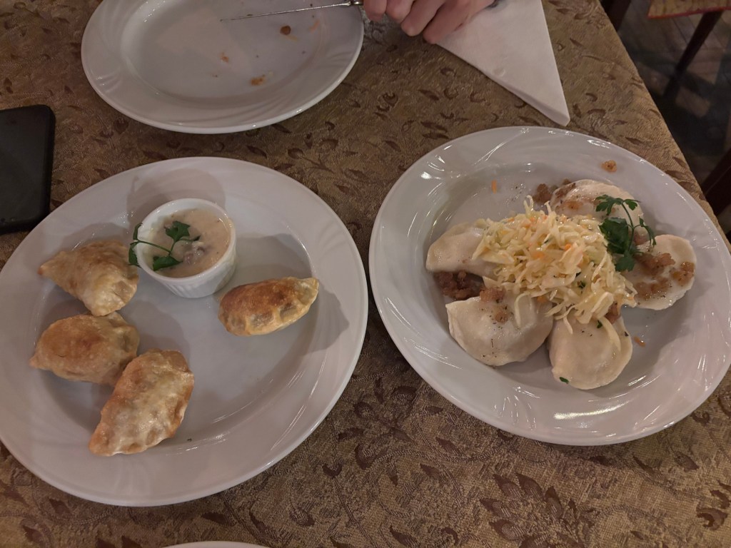 We found the Karczma Pod Kogutem which was a traditional timber restaurant with cultural trimmings. We ordered the Hunter Soup each and meat pierogis and cheese pierogis to share. There was a self service station for bread, smaltz (pork fat) and pickled cucumbers. It was all delicious!
