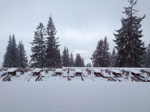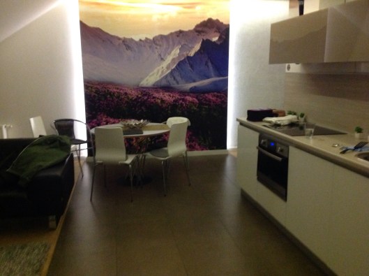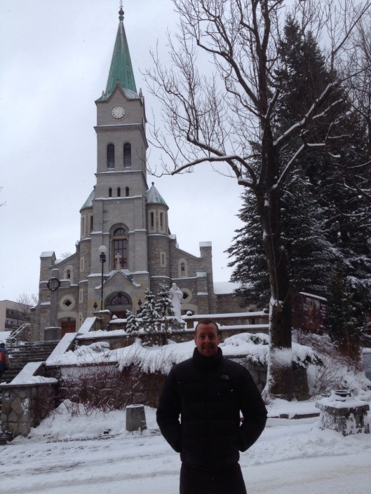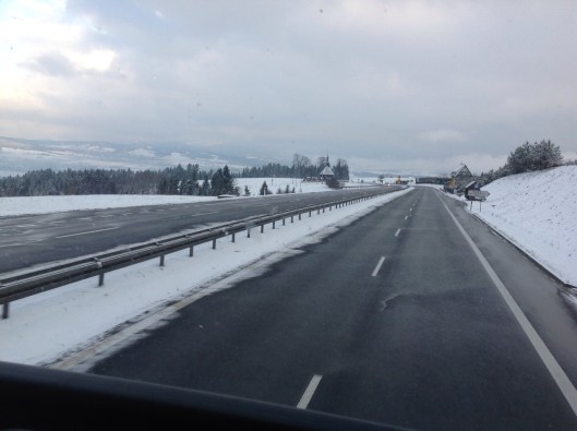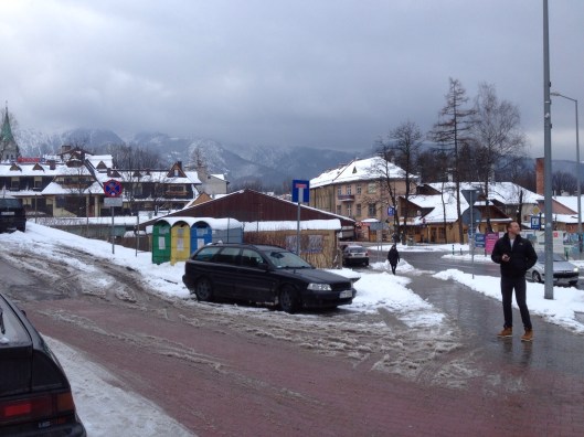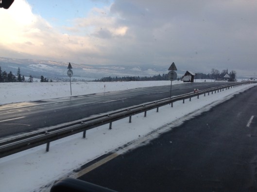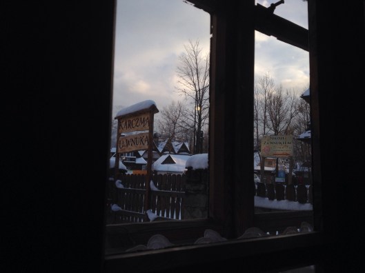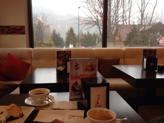 When we reached Zakopane, we were thrilled to see snow and a few flurries again. We caught a taxi to the luxury apartment but couldn’t make contact with the owner. This is one of the set backs of AirBnB because there is not a reception desk as in Hotels. You have to rely on phones to communicate and if your phone is playing up, you need to seek some form of communication. We waited for a bit, there was a very unhelpful woman in one of the apartments, so Scott and I dragged our luggage down to the closest cafe we could find…..about 2 blocks away.