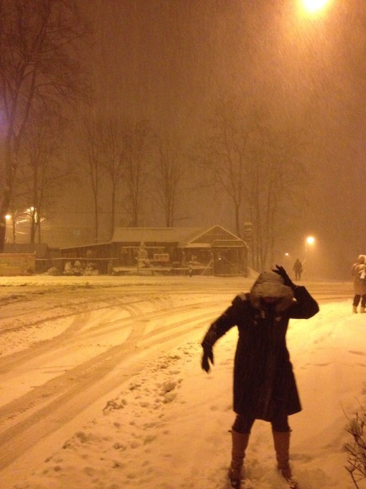 We needed to find somewhere to have dinner, so we rugged up and started to walk. As we walked, the snow got heavier and it was quite an experience to enjoy. Lucky that I had packed my long boots as they were perfect for this journey.