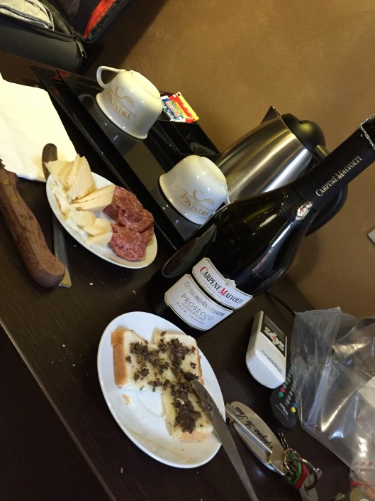 On the way back to Spagna we stopped at a little deli and bought some salami, truffle spread and pecorino to enjoy with some prosecco.