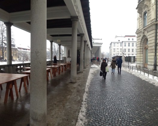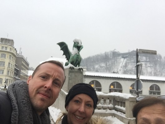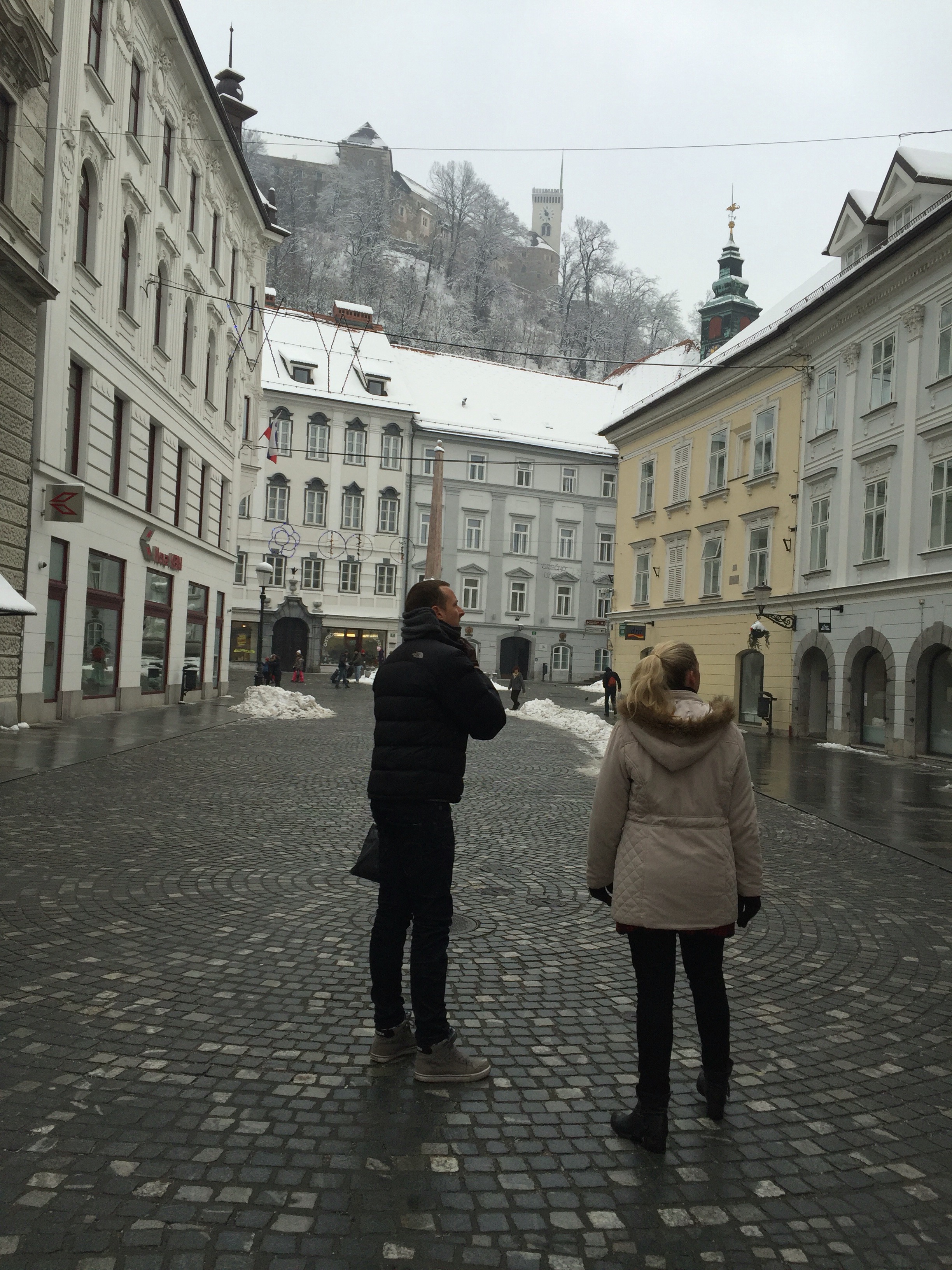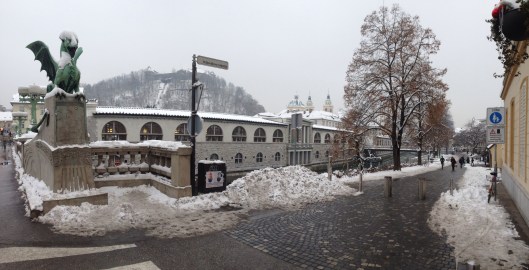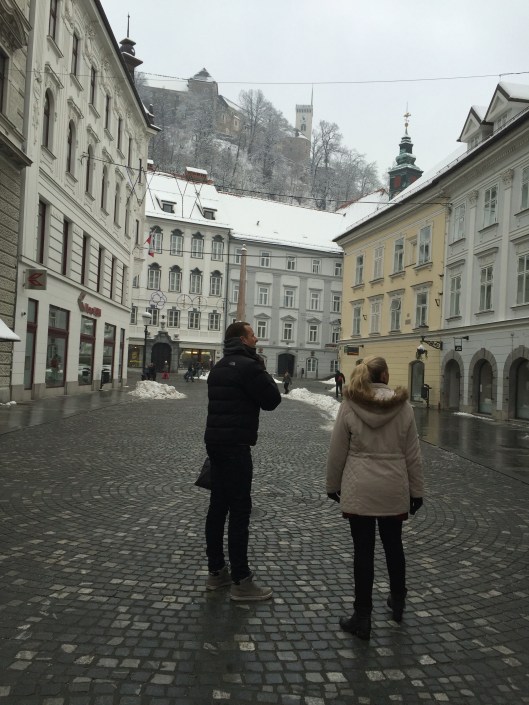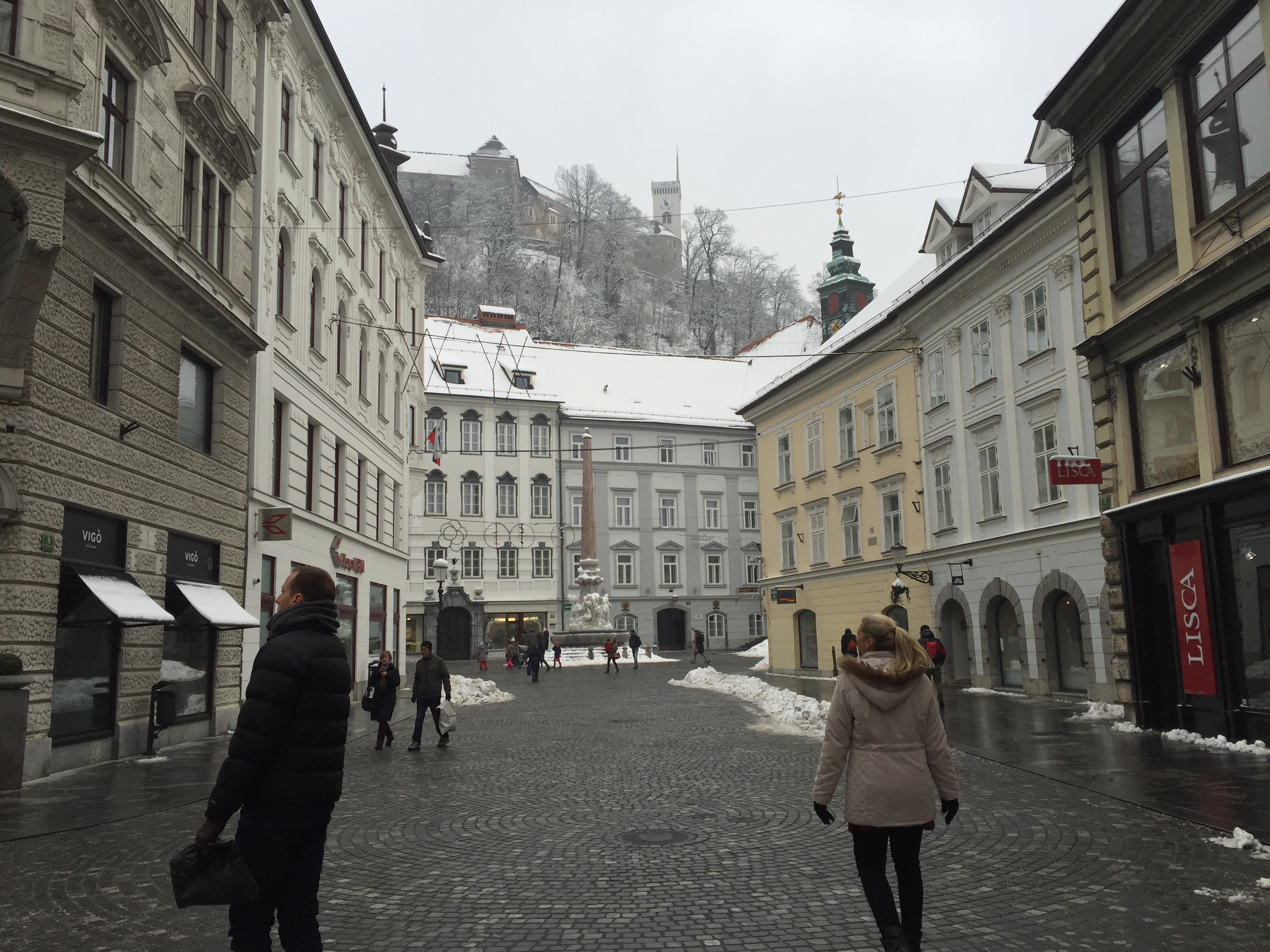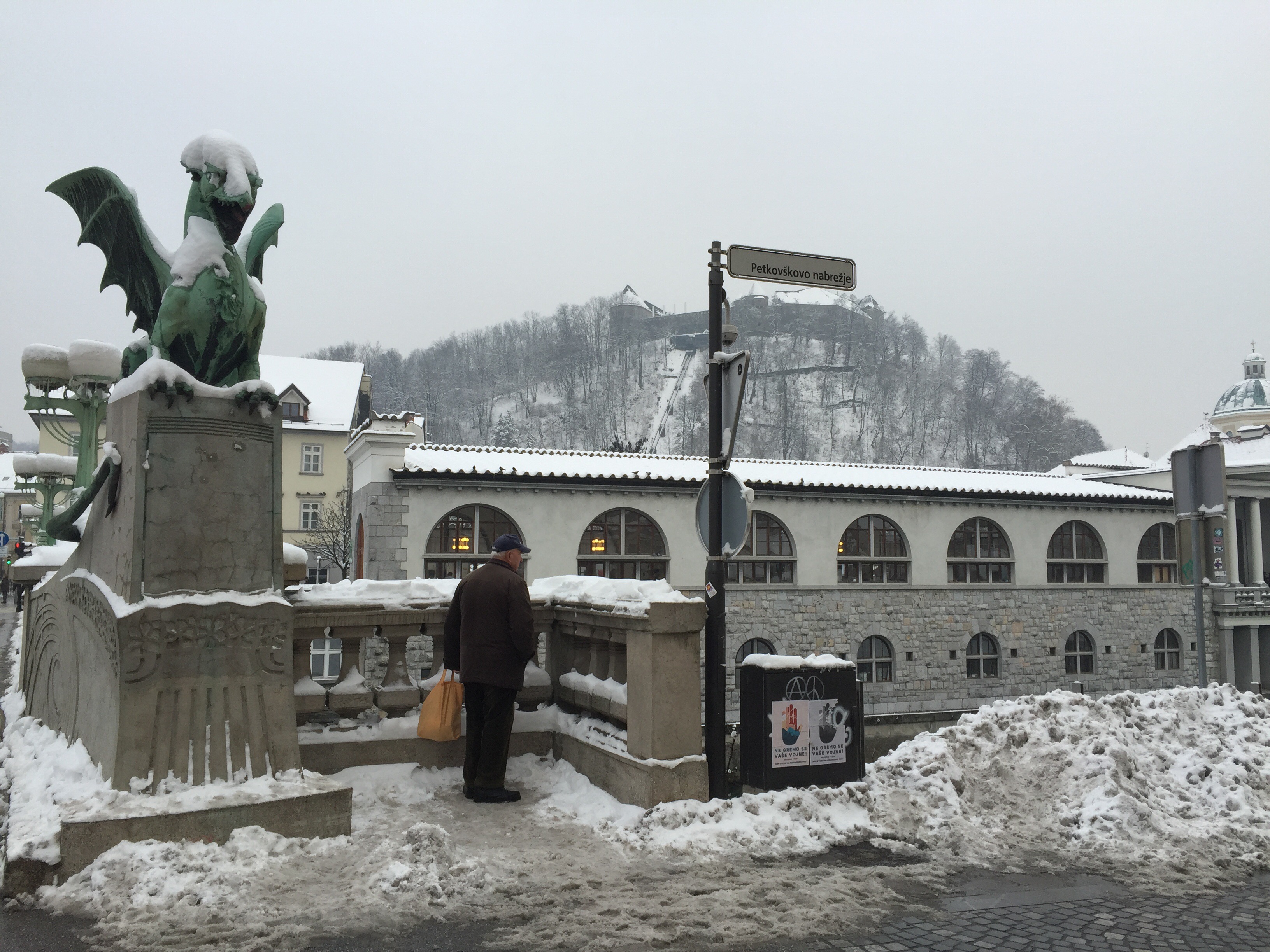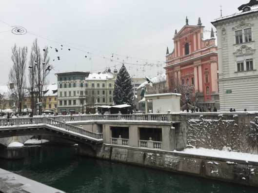 We walked into the Old Town of Ljubljana and explored the beautiful snow-covered streets. The triple bridges over the river are particularly beautiful as is the view of the Ljubljana Castle in the background.