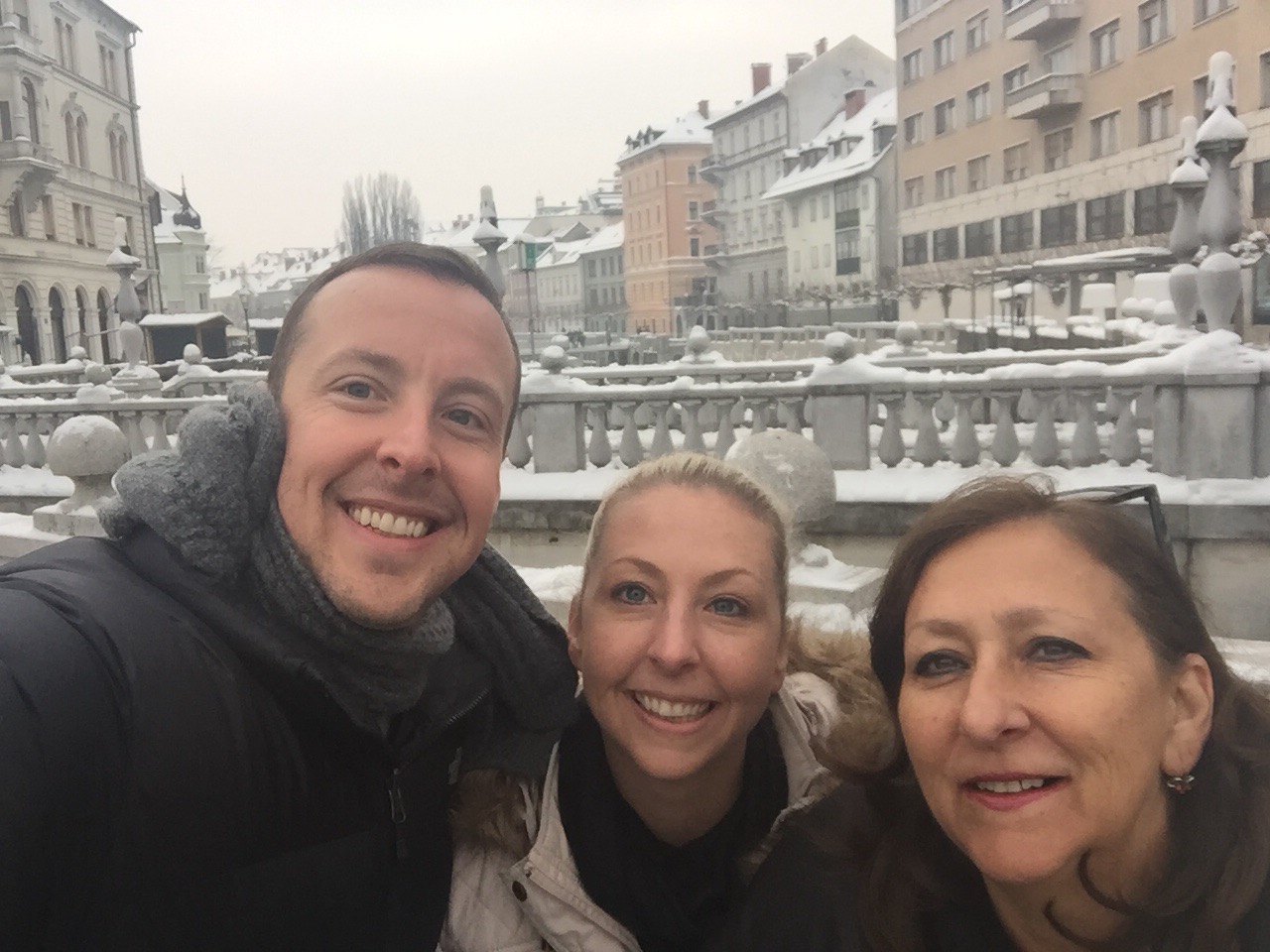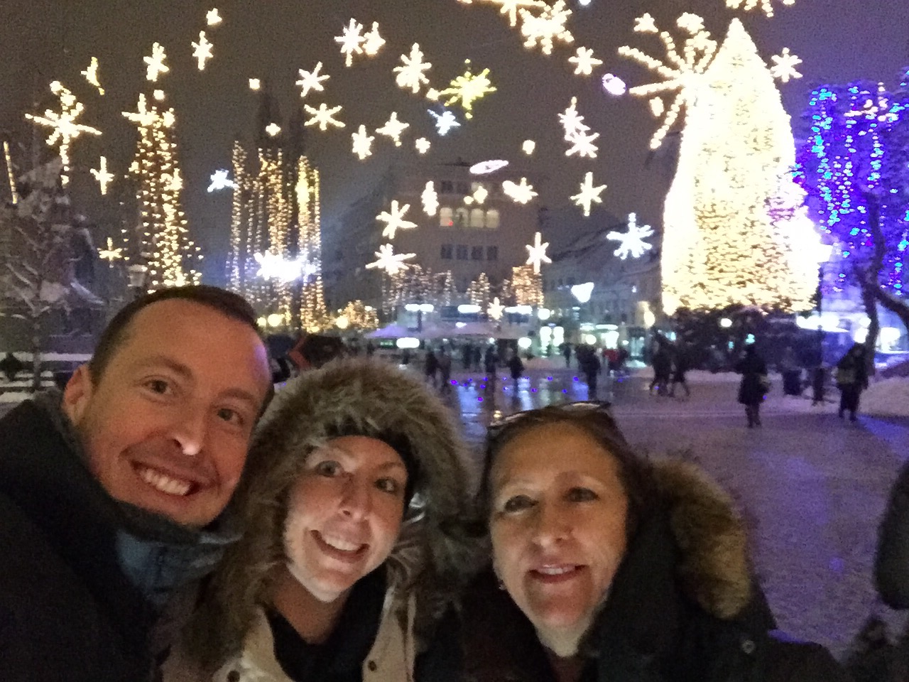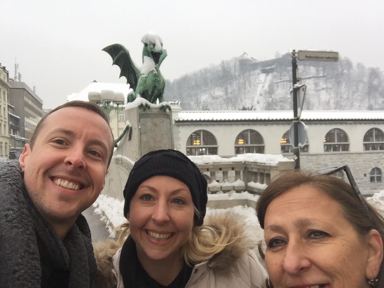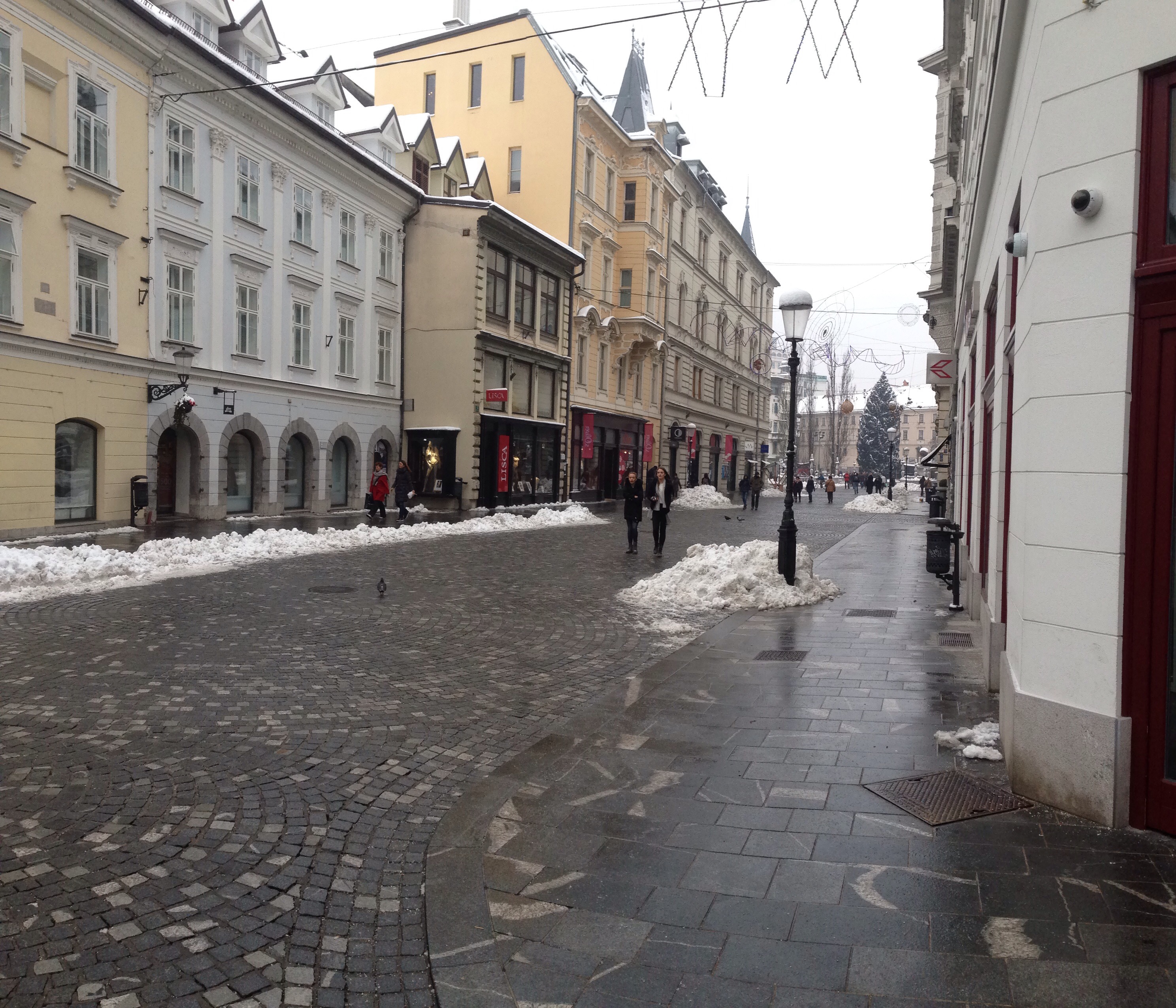 We walked into the Old Town of Ljubljana and explored the beautiful snow-covered streets. The triple bridges over the river are particularly beautiful as is the view of the Ljubljana Castle in the background.