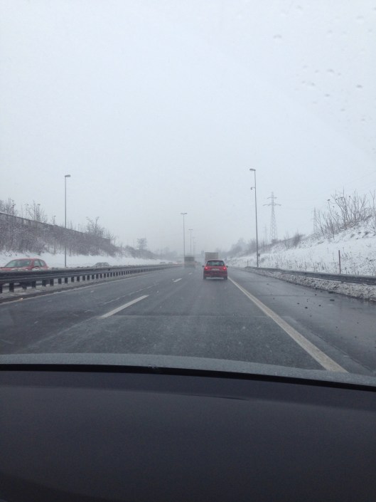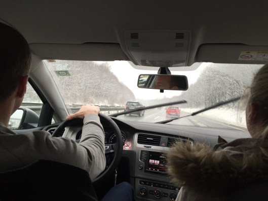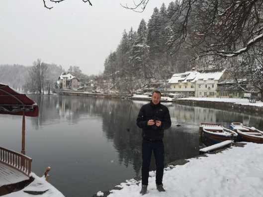 It snowed heavily the whole 45min trip but Scott handled the roads like a pro. Once we were there we were left breath taken. What a stunning place! With the snow falling and a misty fog cast over the lake and its surrounding buildings it was like being stuck inside a snow globe.