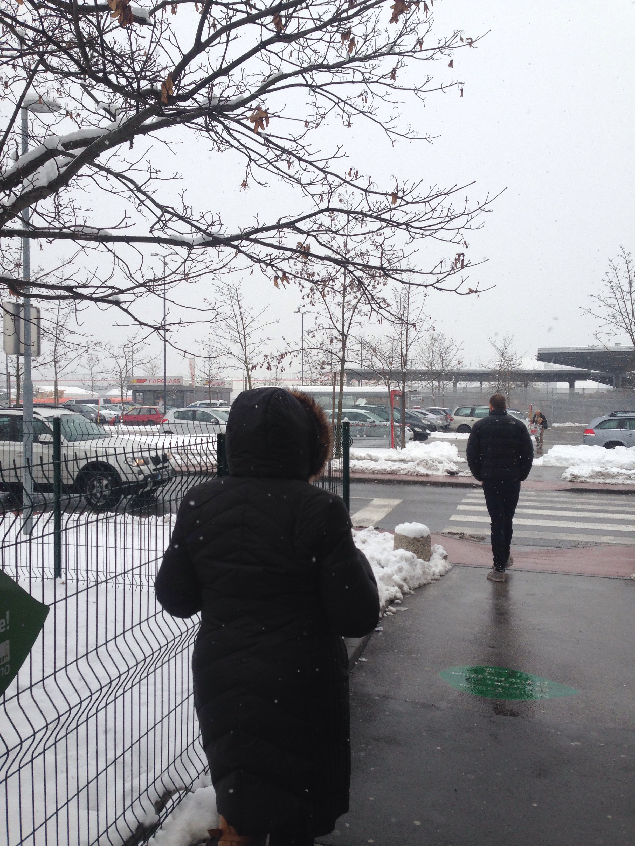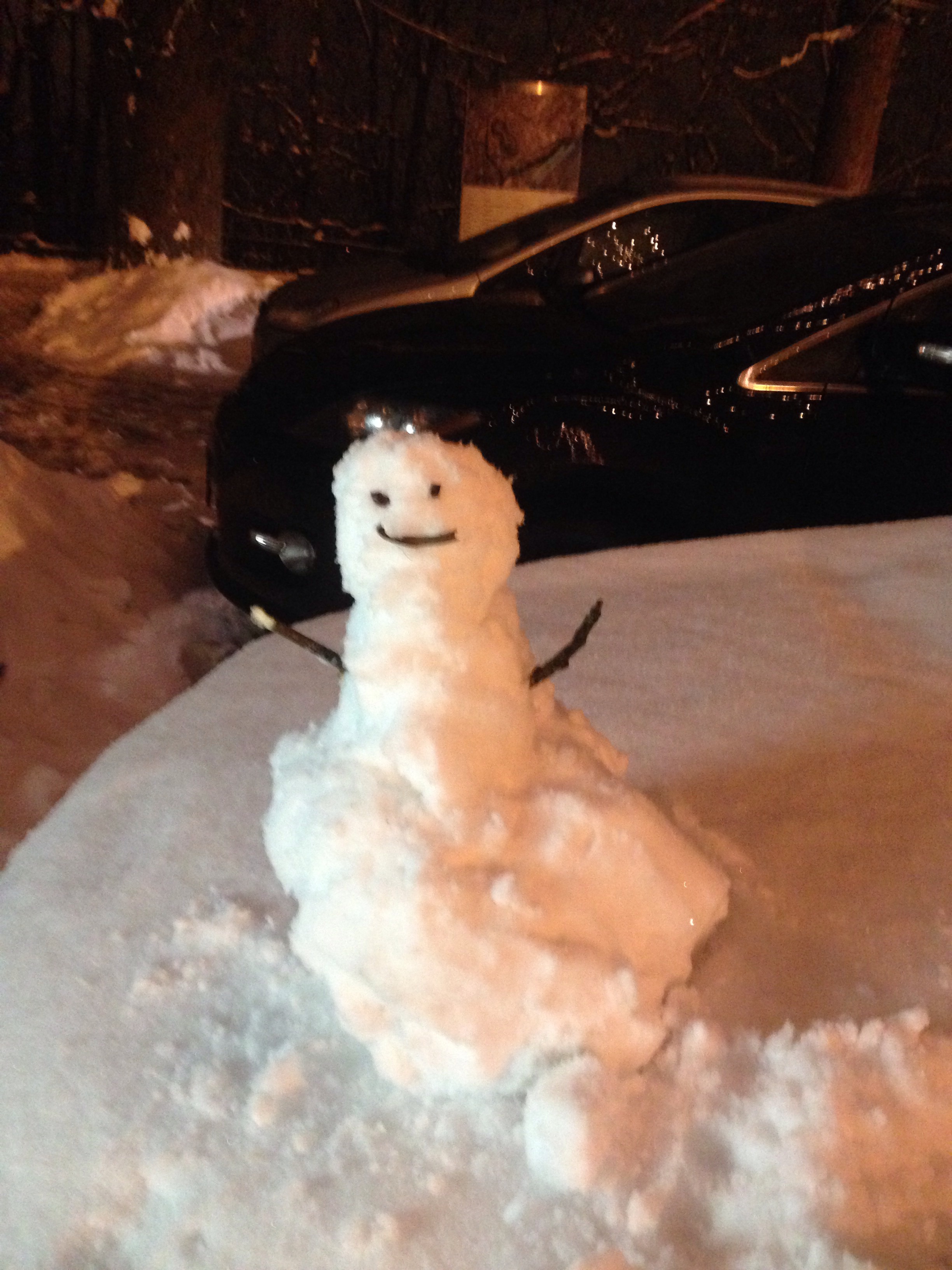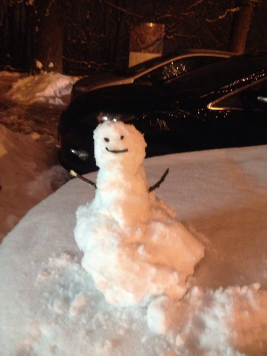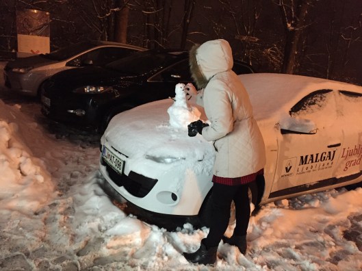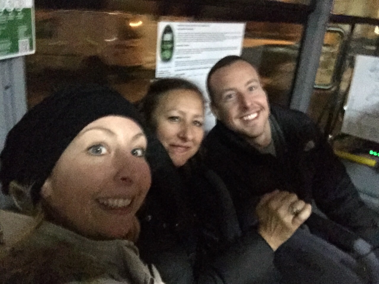 Once dinner was over Michele and Scott took the liberty of sculpting a beautiful snowman masterpiece on the bonnet of someone’s car while we waited for the bus back down.