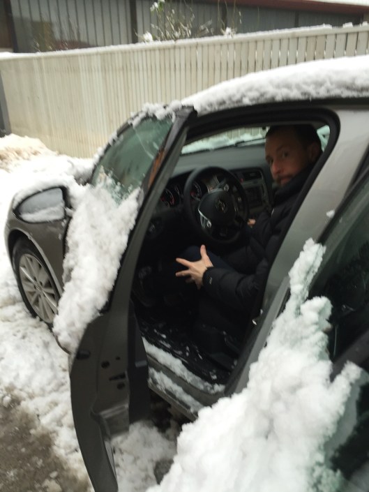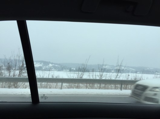 Viktor the Volkswagon was covered in snow when we got ready for the long trip to Budapest. The roads were very snowy and the views were amazing.