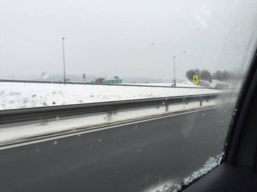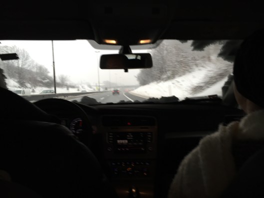 The snow continued falling in places on the road and Teresa kept as calm as she could while Scott competently drove Viktor VW through some of the worst road conditions. Snow, snow, sludge, ice and more snow on an auto-bahn at 120kph and more.