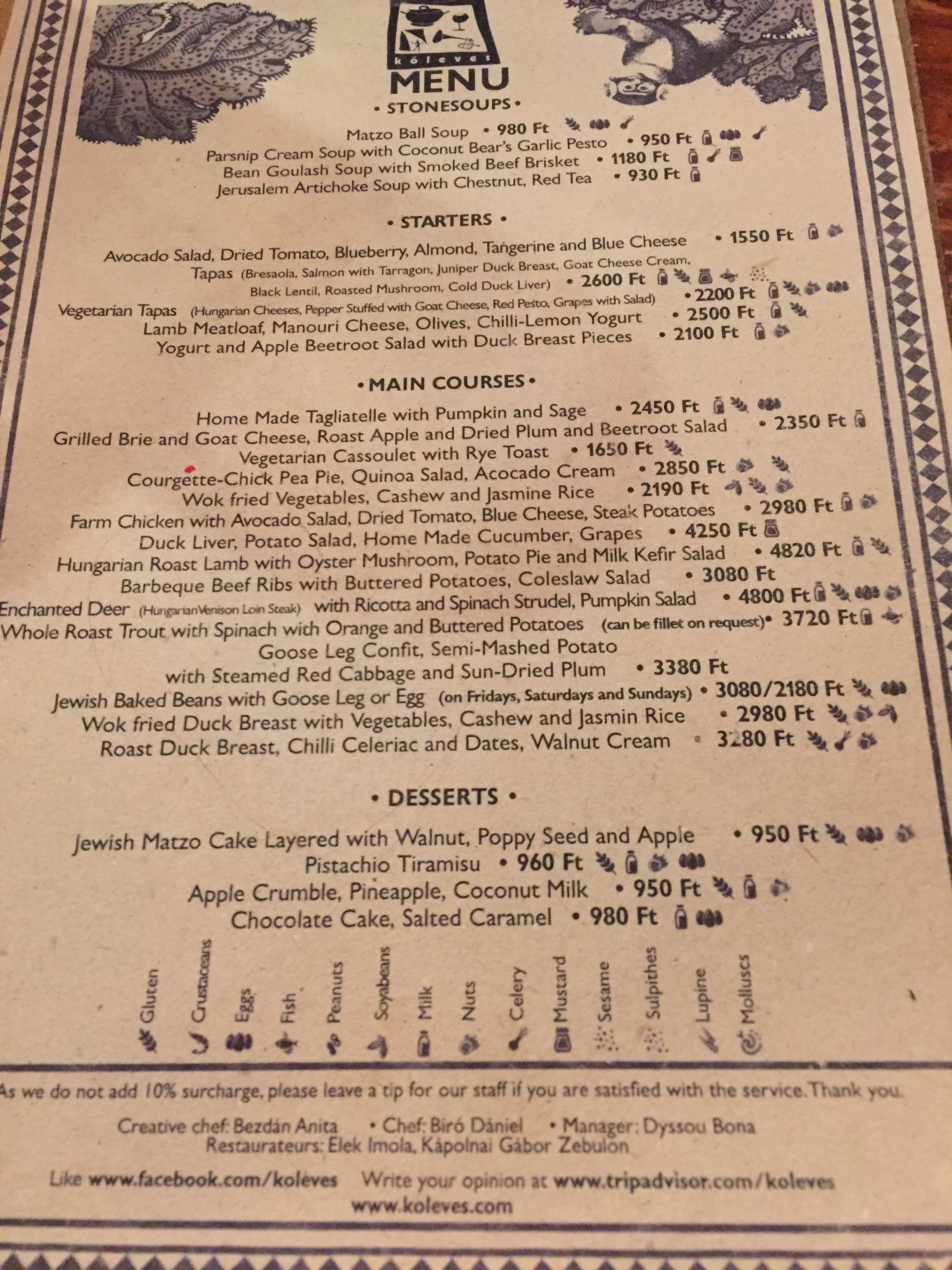 Dinner consisted of local tapas in a cool restaurant. Beer and Zybrowka were also consumed. Interesting to see how different countries address dietary requirements in their menus, Slovenia used pictures and numbers whereas here they use pictures on the menu.