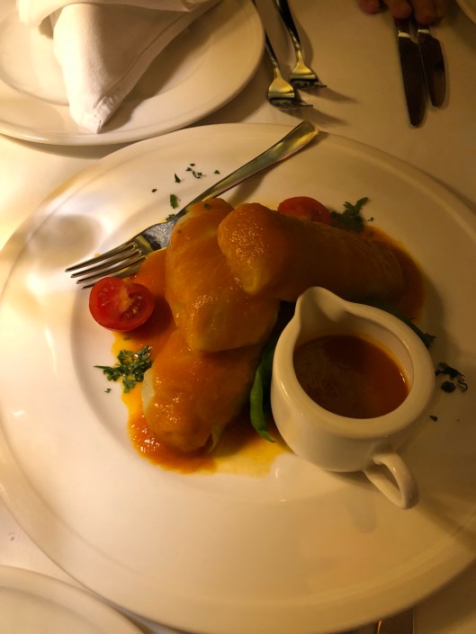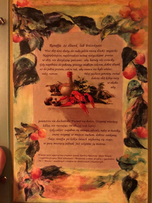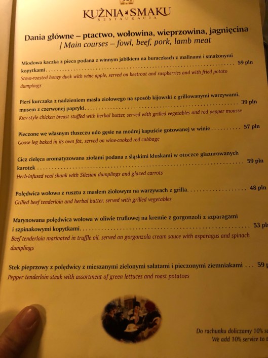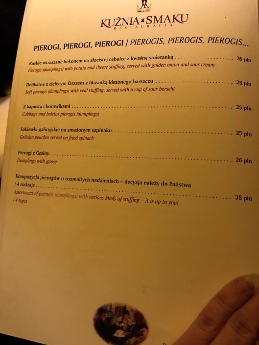 The table was laden with delicious foods and we knew that we had arrived at the best restaurant in Poland. Entree was pork and vegetable soup and for main we had pierogi (mushroom & cabbage served in goose fat) along with multiple salads and sides. To drink was jugs of cherry juice, apple juice and water…and of course, vodka! The family were so generous, gifting us with ceramic angels and surprising Irene with a bunch of flowers for her birthday.