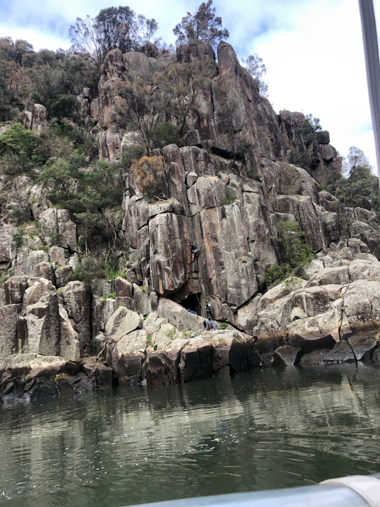 Cruising further into the gorge, Captain Steve explained that in the warmer months it is common to see rock climbers tackling the dolerite rocks that towered either side of the gorge. He also explained about the flood mitigation system, which diverts flood water from flowing into the township back into the river. This proved its worth when they experienced one of the biggest floods in 2016.