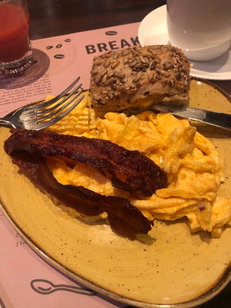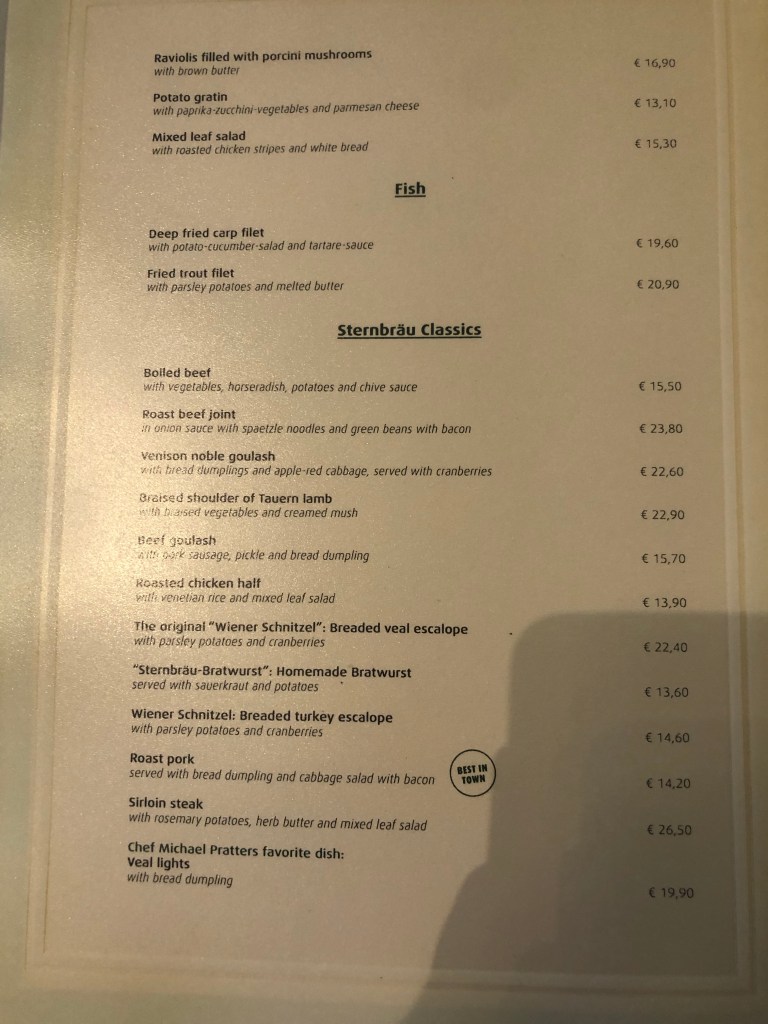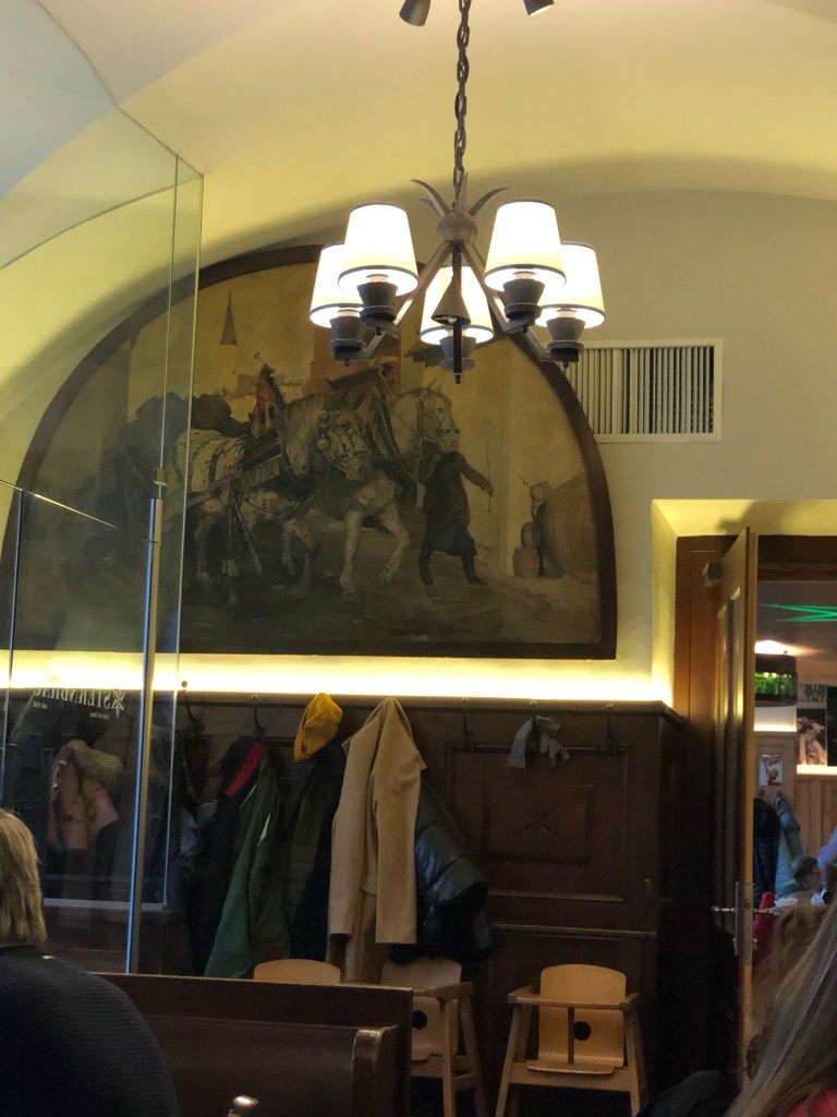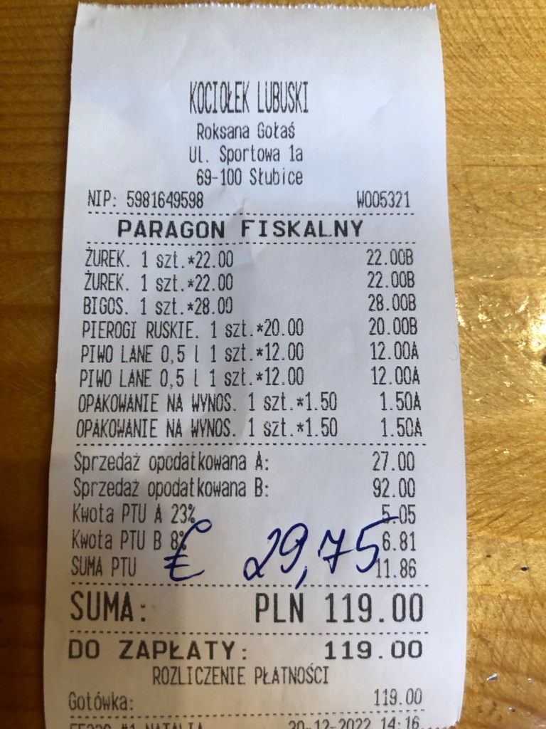 The restaurant looked like the inside of a timber cabin and was fully decked out with timber furniture. When the Polish waitress approached us, Scott enquired about her choice of language – English or German … she preferred German. The menu was also in Polish and German. We ordered a Zurek soup each which were served in a cob rye bread loaf and packed full of Polish sausages and half a boiled egg. The soup can be described as a fermented rye sour soup. It was the best!!!!!!