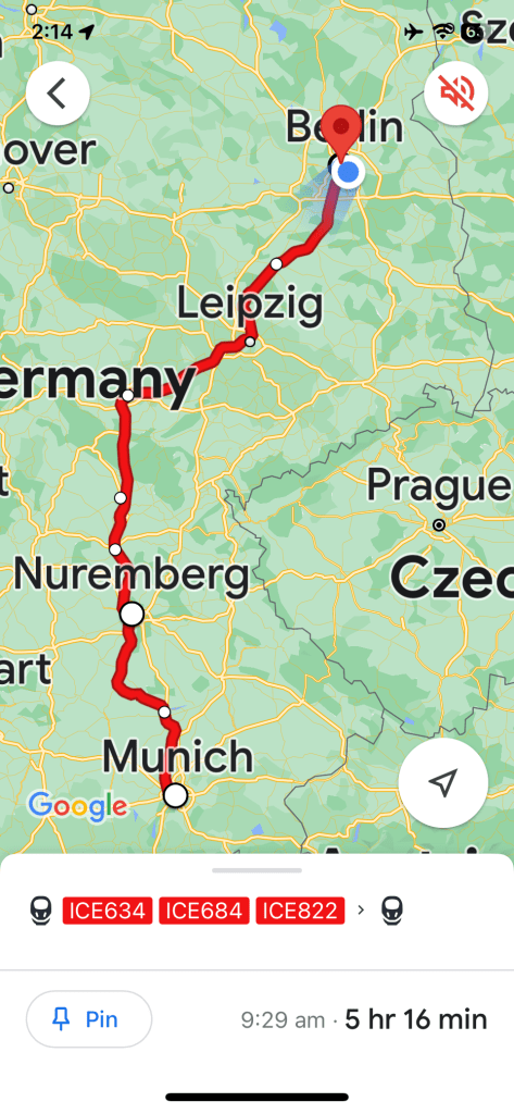 There was a train at the platform that all of a sudden was terminated at the station so people had to alight. There was an announcement that the train we were waiting for was delayed because of a ‘police incident’. So a train finally arrived at the opposite platform and there was no information about it but we all just got on and anticipated that this would become the train to Berlin. It did! So this took about an hour travelling west to get to Ostkreuz station, Berlin and then one stop to Treptower Park station. It was now dark and we still had the 1 kilometre walk to Scott’s apartment. For dinner we finished the left overs from lunch. Just as good as before.