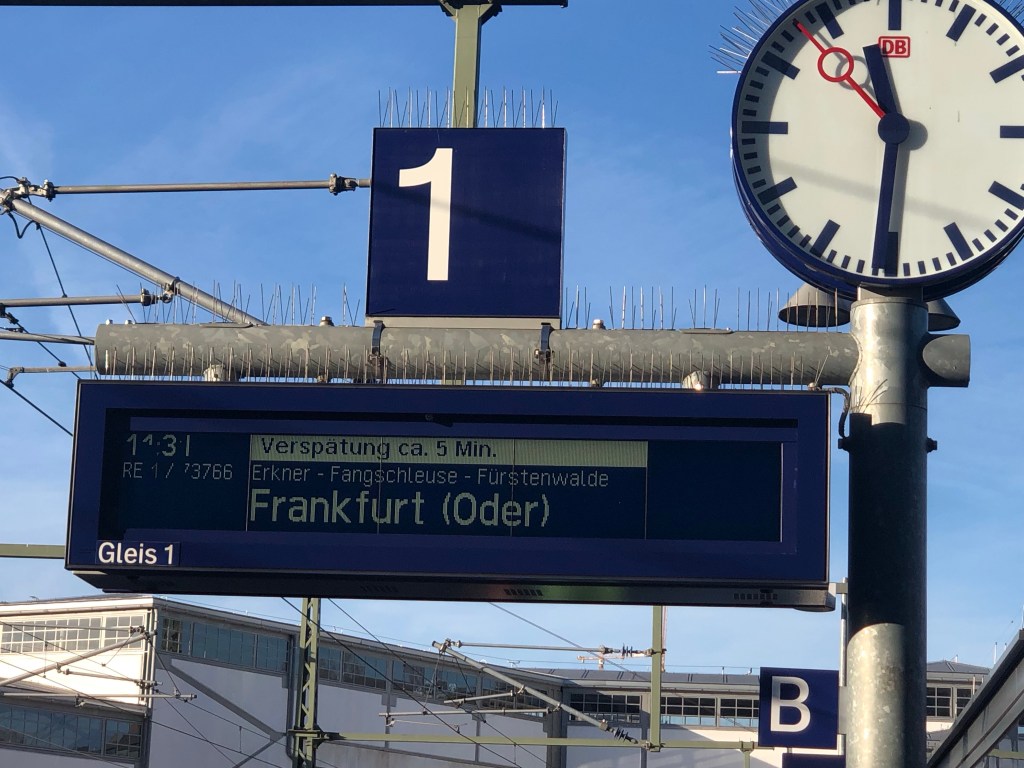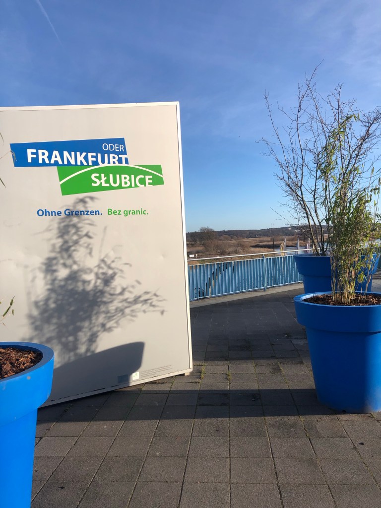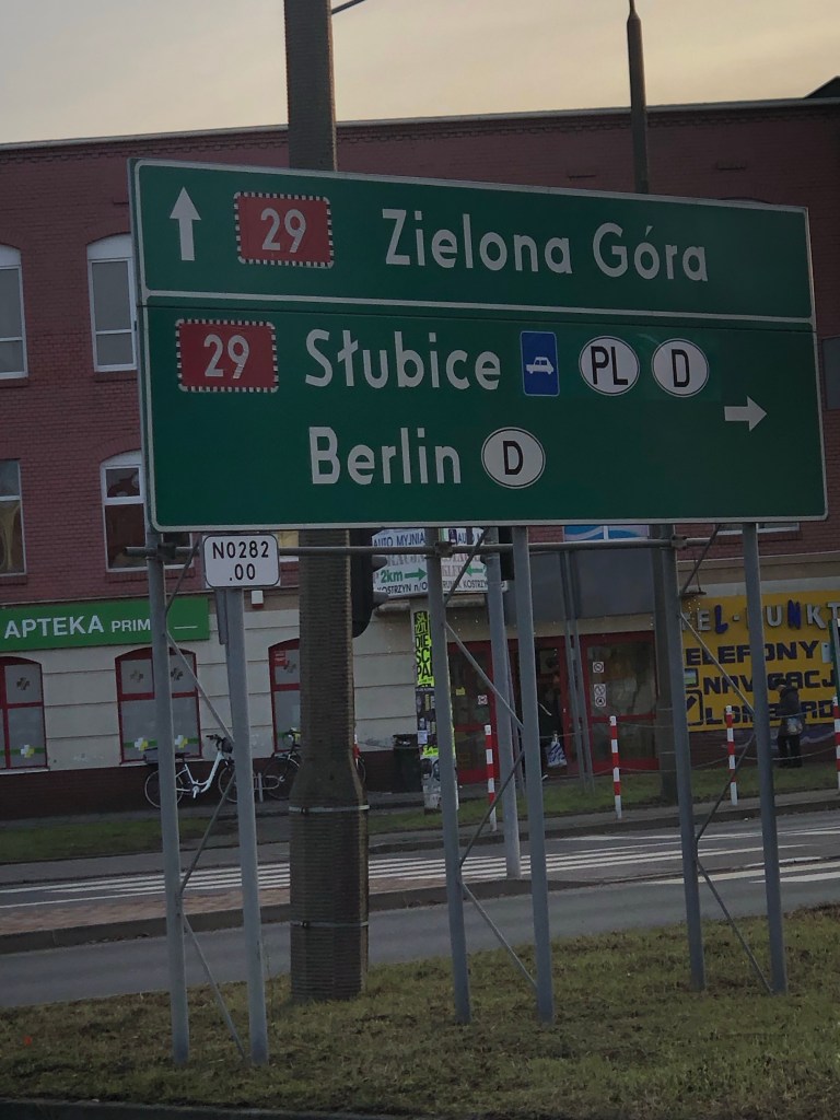 Then we rode a train from Treptower Park to Ostkreuz where we boarded another train to Frankfurt am Oder, a town on the border of Poland. (this is another town called Frankfurt but it is on the Oder river, whereas the large city of Frankfurt is on the Main river further south west). Scott knew how to get the tickets using the machine on the platform as I would struggle to follow the prompts.