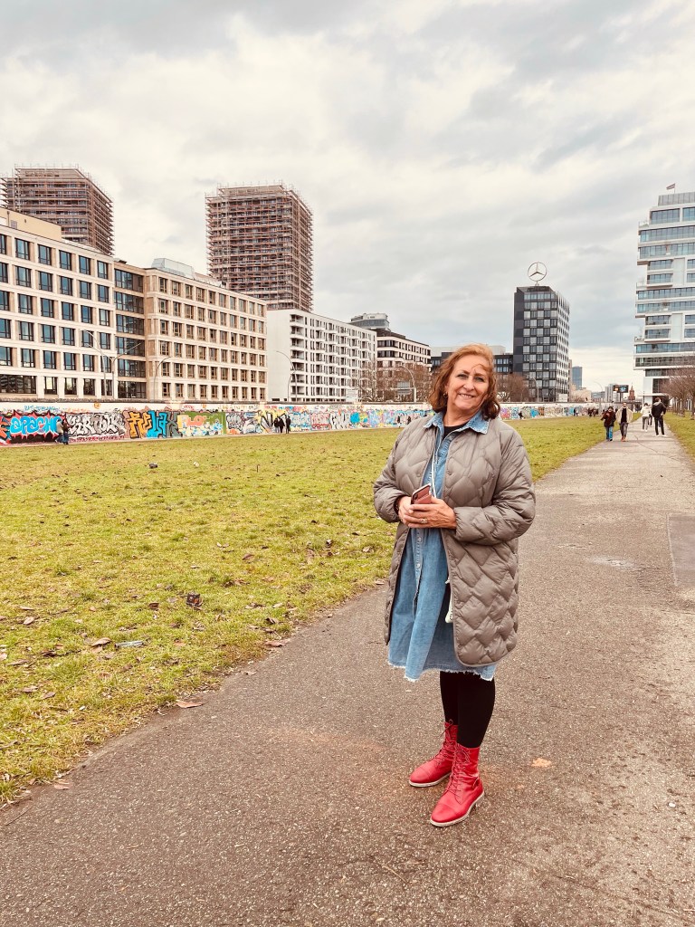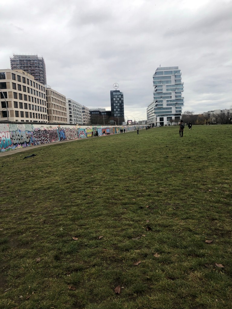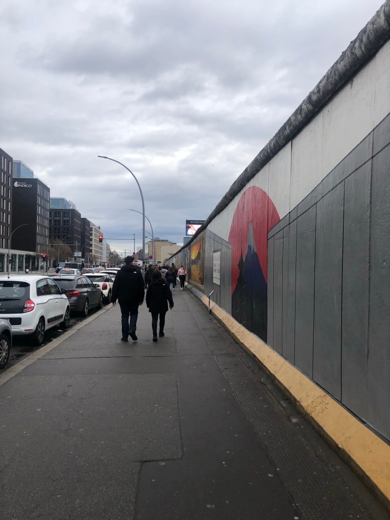 After our meal we continued on foot to FriedrIchstrasse. We walked past the Galeries Lafayette where the Accenture Berlin office is located. Further down the road is Checkpoint Charlie which used to be a Berlin Wall crossing point between East and West Berlin. Of course the place is now surrounded by American fast food stores and souvenir shops. There was a tree decorated with Ukrainian flags erected beside the checkpoint.