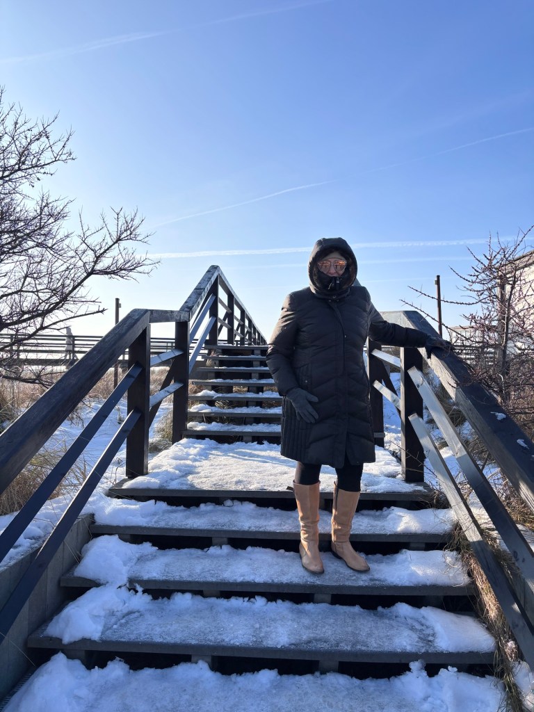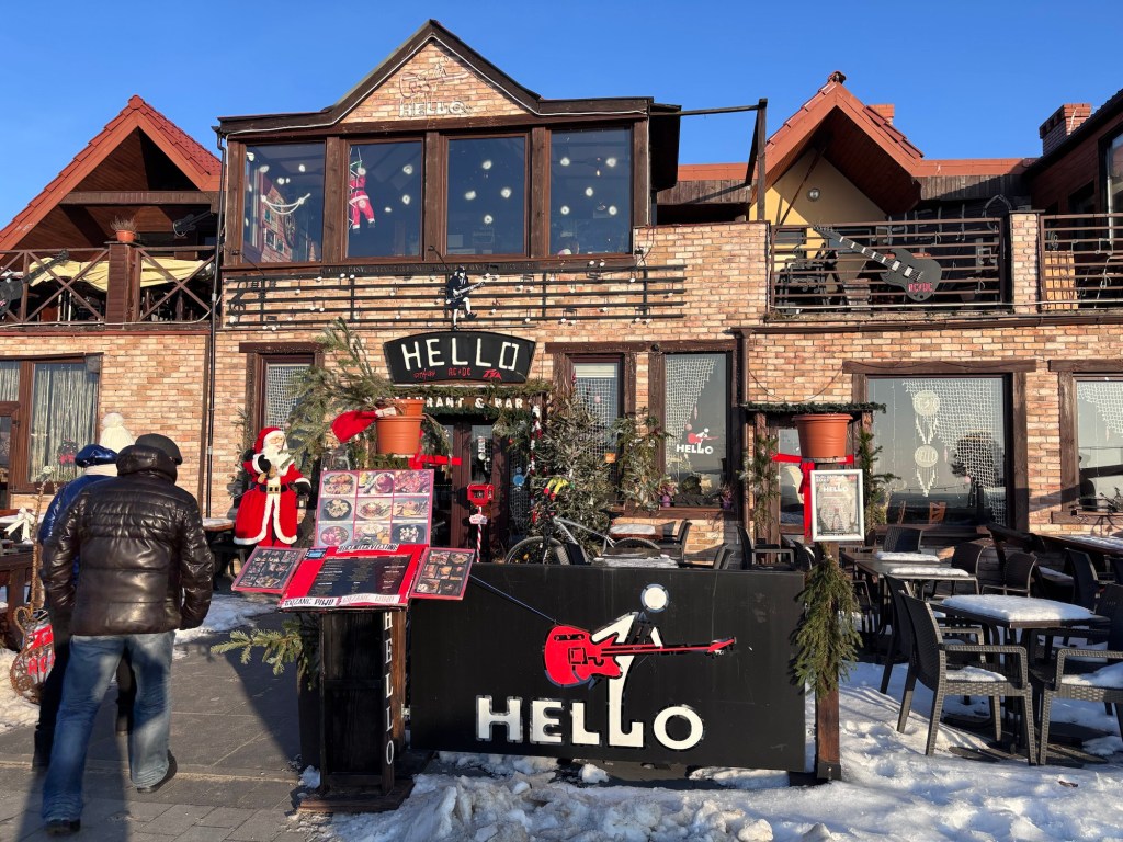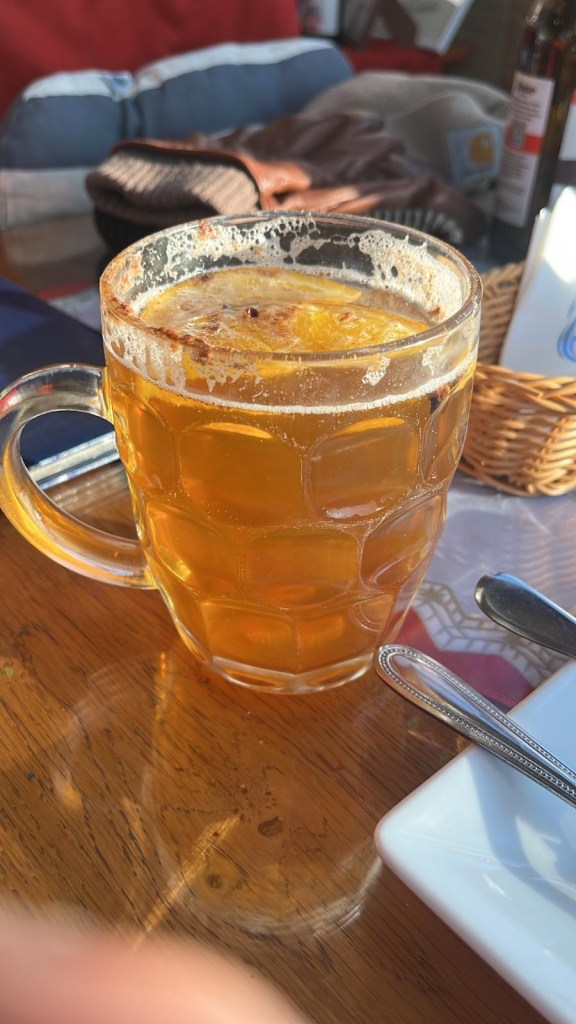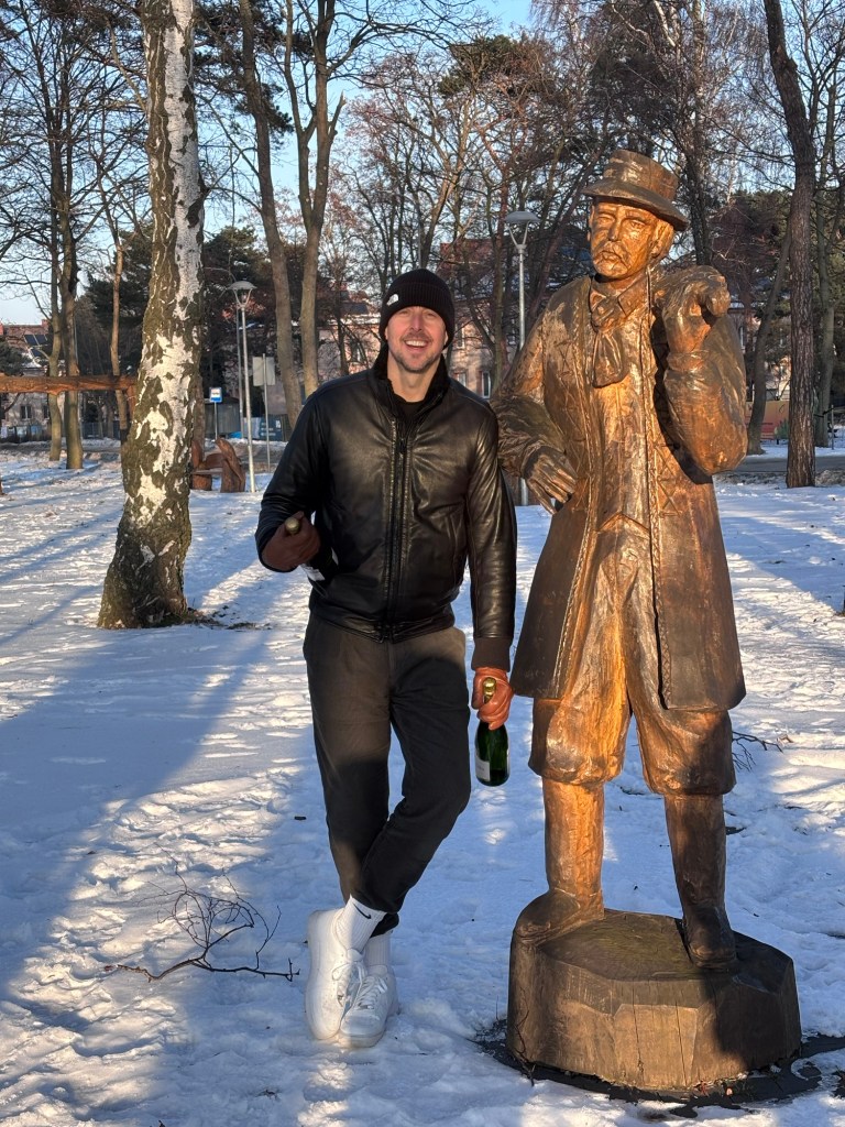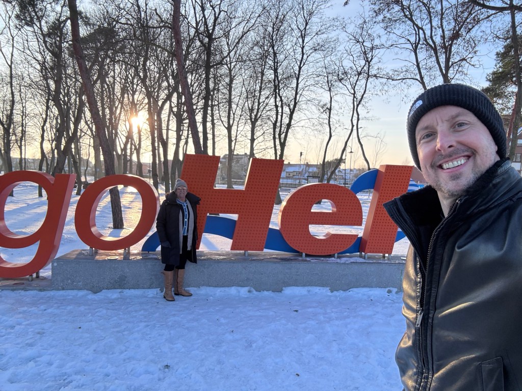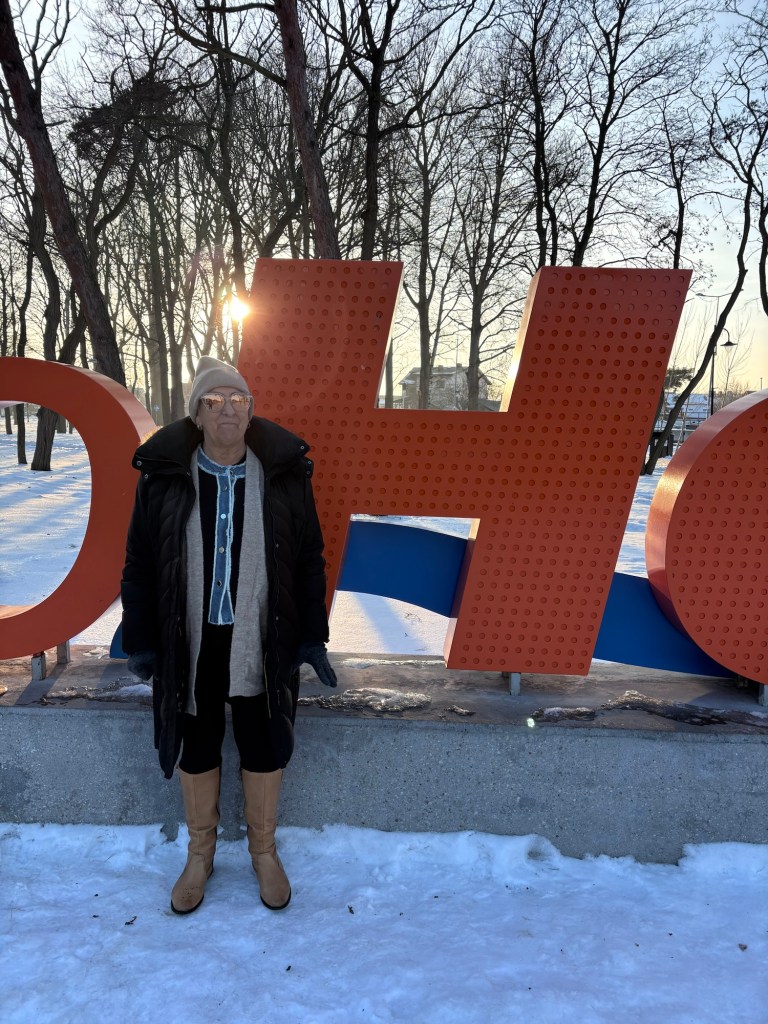 We admired the view before seeking warmth and some lunch. The Fala restaurant was just across the icy road so we settled in. We enjoyed Borsch soup,  Flounder and fried potatoes and then a Pierniki gingerbread cake that was so moist and boozy, it was a hit!