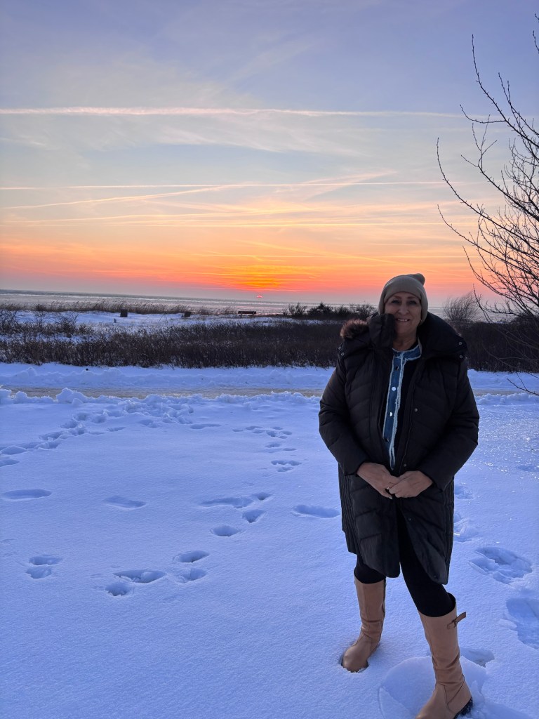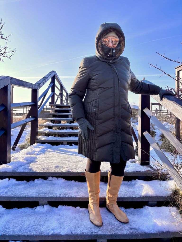 The sun was a red ball near the horizon as we were driving out of the isthmus but unfortunately we could not capture this in time…. And getting out of the car was a major effort in the snow and cold wind.