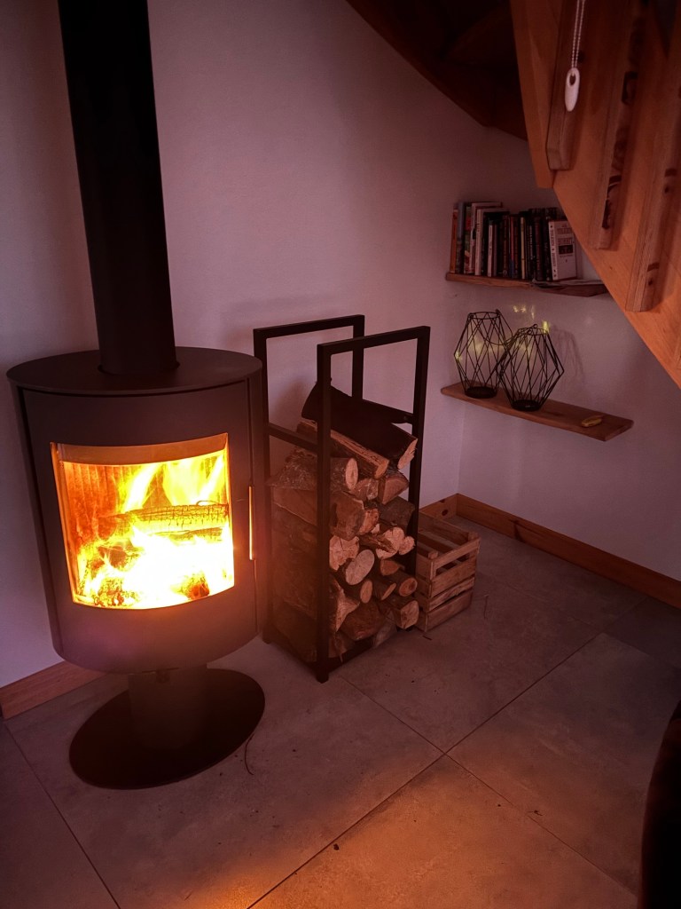I was pleasantly surprised to see that an impressive fire had been created by my travel companion for our comfort. The landscape outside was awe inspiring.