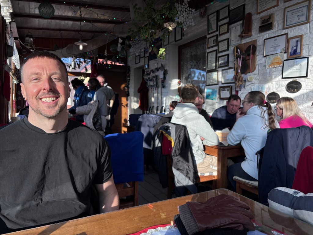 Apparently the massive snow piles and icy conditions have not been this severe for ten years. Our villa has a projector and screen that we took advantage of to watch the next episode of The Night Manager.