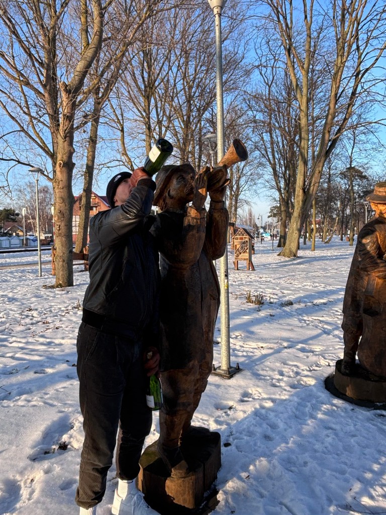Hel can also be accessed by train from Gdansk or Gdynia and there were people travelling this way as it was a Sunday. We parked the car and negotiated the ice paths to get to the Esplanade and the Baltic Sea. I was surprised to see a group of about 10 people swimming in the freezing waters!!!!