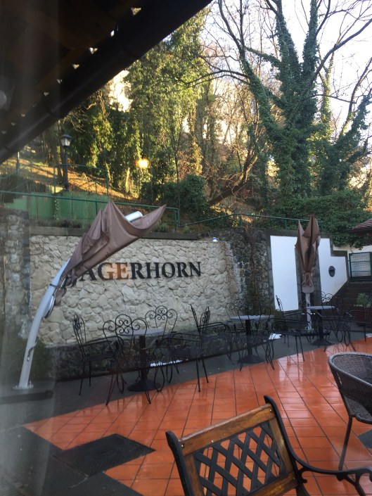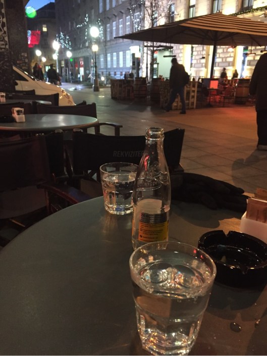 We walked to the upper town using the stairs directly behind the Jagerhorn rather than catching the funicular again. At the top of these stairs was the most amazing little outdoor bar connected to a restaurant which overlooked the city of Zagreb. We drank vodka while we marvelled at the vista around us as the sun set. Stunning!