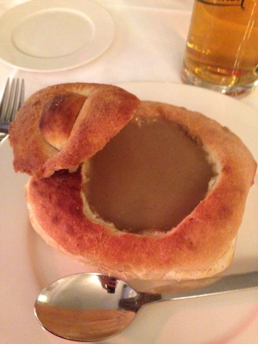 We had a beer stop at the Bulldog Cafe and then off to Vinodol for a lovely traditional lunch. Michele ordered mushroom soup in a cob and Teresa enjoyed a pork, cabbage and potato dish. All washed down with local beer.