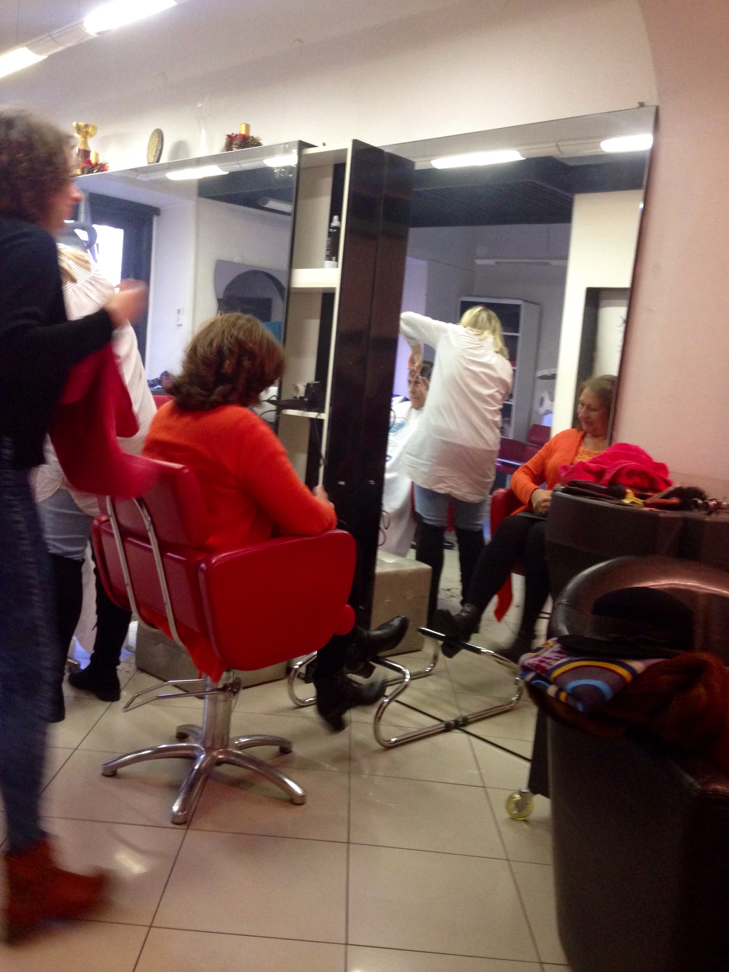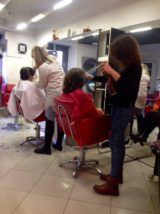 It was time to attend to the hair again so we found a ‘frisier’ who charged us $15 each for a wash and blow dry. We are salon ready again!