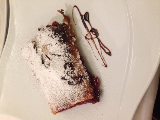 Michele finished with a cherry strudel and we complemented our meal with vodkas which were served straight with a slice of lemon……….very smooth!