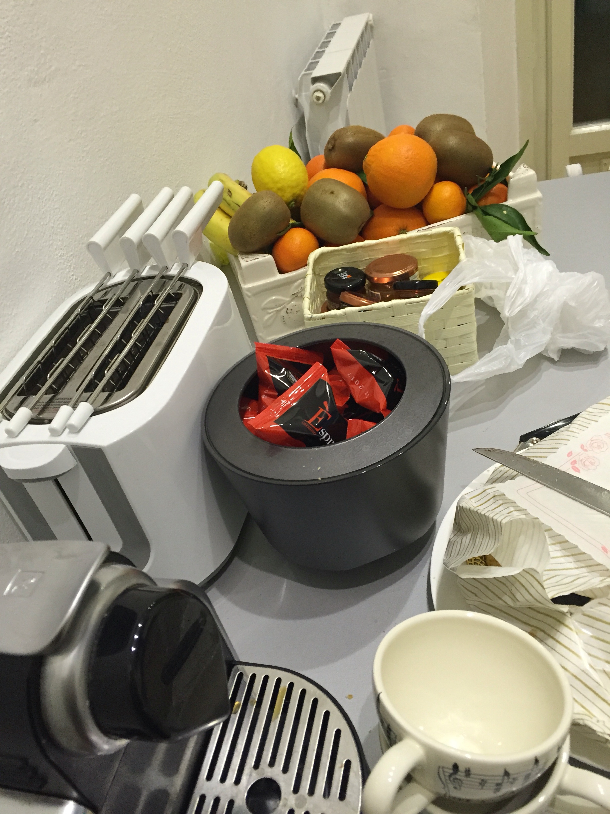 We had a nice coffee and baked Cheesecake and successfully communicated with the shop keepers to use their phone to contact our host. They spoke very little English and it was a challenge to ask to use their phone. Once into the apartment, the magic started…..it started to snow, and snow and snow. The apartment is beautiful but while I write this I am peed off that there is no tea or coffee provided, as should be the case. Again, one for Hotels!